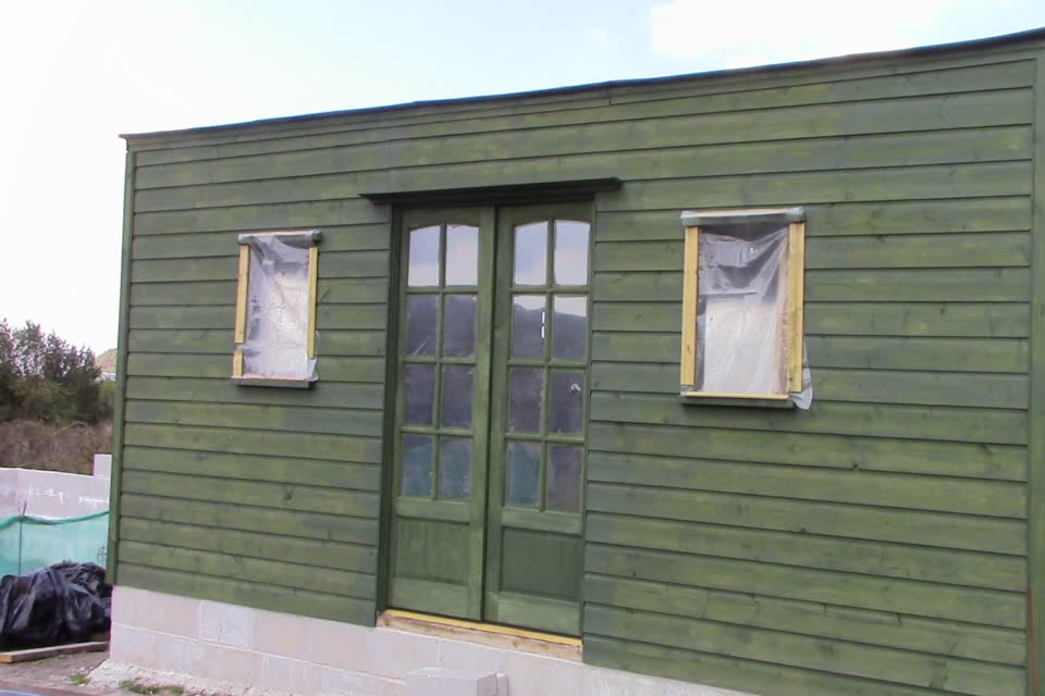 cladding gives good all-round weather protection. The plastic on the windows is just temporary until the windows are completed.