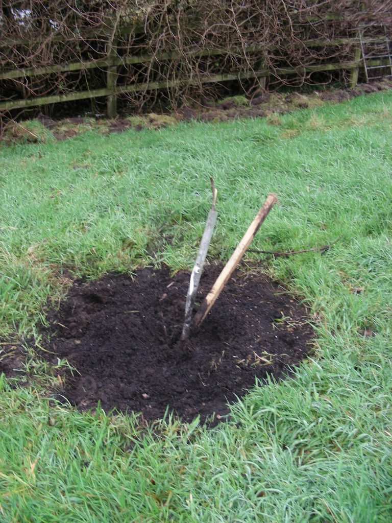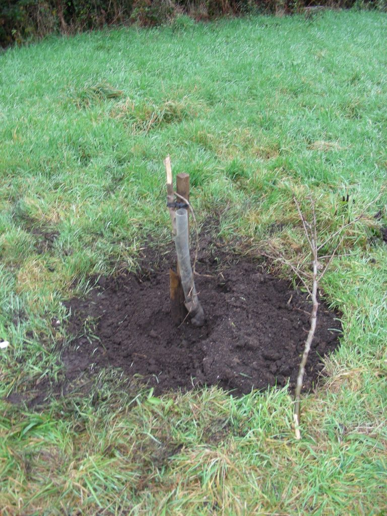 This, however, was not to be the only visitor. In the meadow field, there was a horse, quietly grazing on the lush grass and unconcerned by our presence. Strangely enough, the gate to the field had been closed? Yet no one to be seen. On further investigation we found devastating news that shattered our day – the horse had been in the newly planted orchard and had destroyed many of the trees. For some unknown reason, the horse had flattened 10 of our trees so that there were only 18-24 inches left on the main stem.