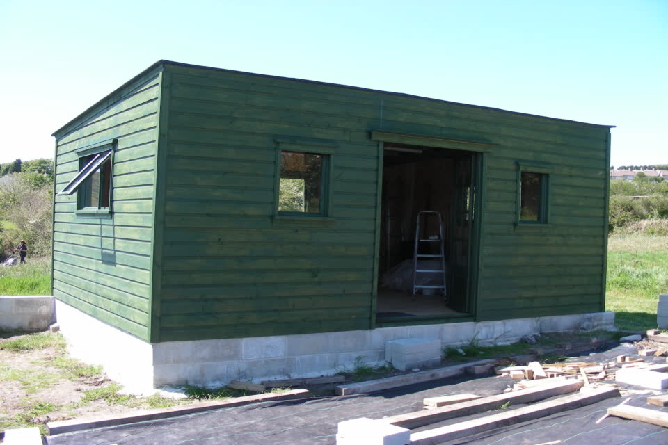 Our new hut is almost complete now and Paul is busy finishing the task apace. It is getting its second coat of wood protection in a forest green finish which we think blends in well with the surroundings. All of the windows have been fitted and the glass has been set in each frame and the temporary plastic covers removed. We have three top-opening windows so we can get a fresh breeze through the hut in the summer months when it tends to get a little muggy. The double doors on the East entrance will suffice to let air through on that side.