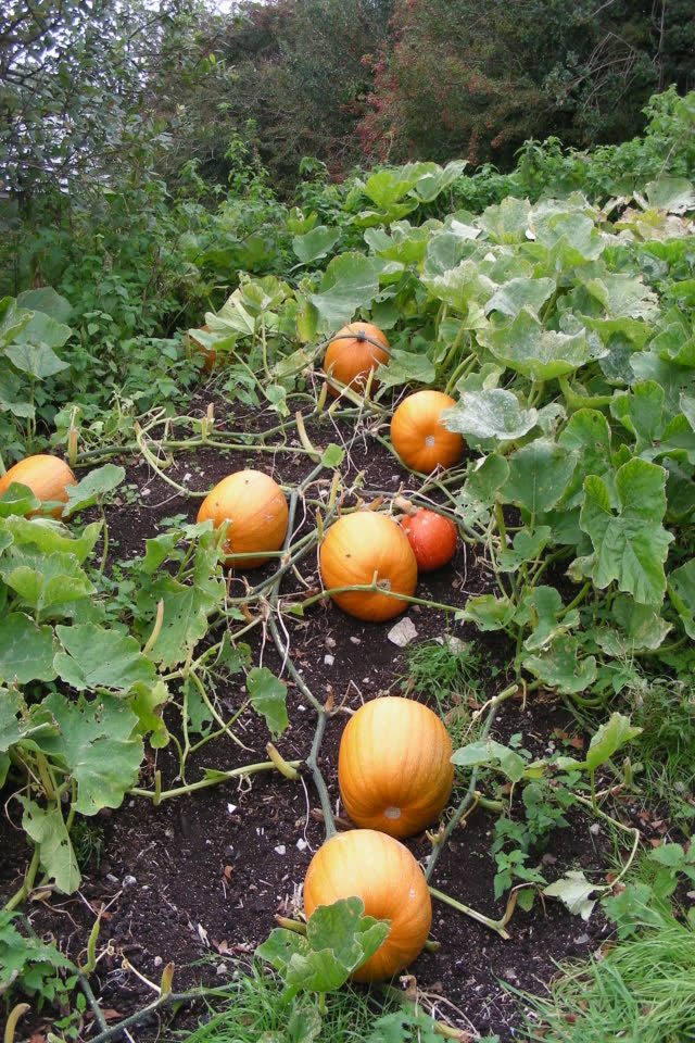 Pumpkins (larger ones) and Squashes (orange ones) grow up the ramp