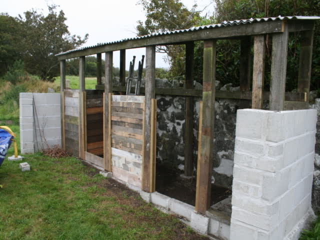 There will be four 1 meter squared units for the compost and an end shed for tools and other items used in composting. Although it will not provide us with all of our compost needs, it will help go towards the amounts we shall need once we are up to speed.