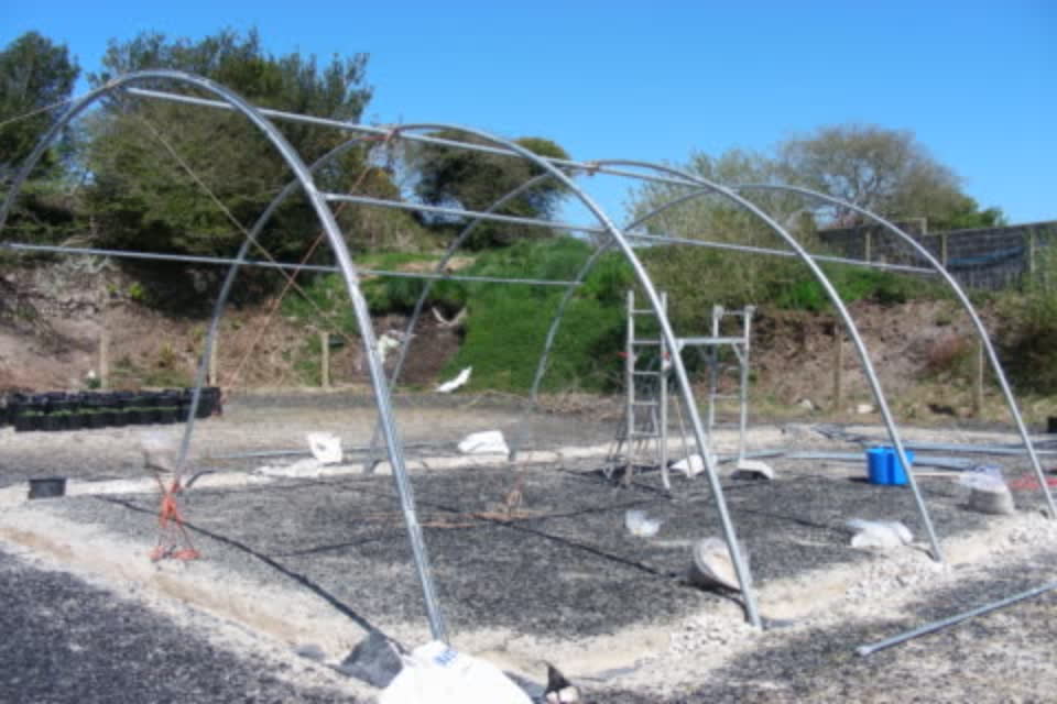 And what is the next project you may ask? Yes, folks, the polytunnel is underway. Measuring some 40 feet x 20 feet, it is not small, but big enough to give lots of room inside and plenty of scope to expand our growing range.